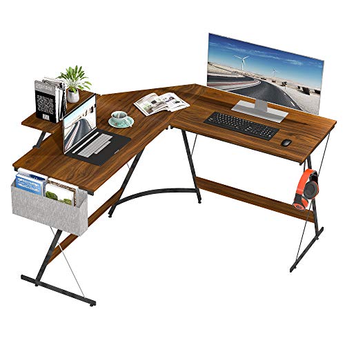 Limited Discount L Shaped Computer Desk, 50.2'' Corner Desk, Large Home Office Student Writing Desk with Monitor Stand, Iron Hook, Easy Assembly, Walnut Simple review